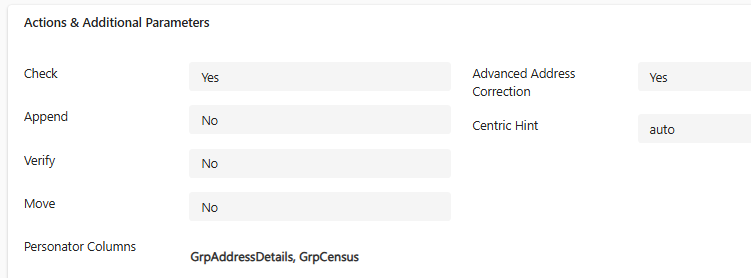 - Check, Append, Verify, Move : Refers to Melissa Personator's actions. Enable the ones that you want to use as part of your Personator API Call.